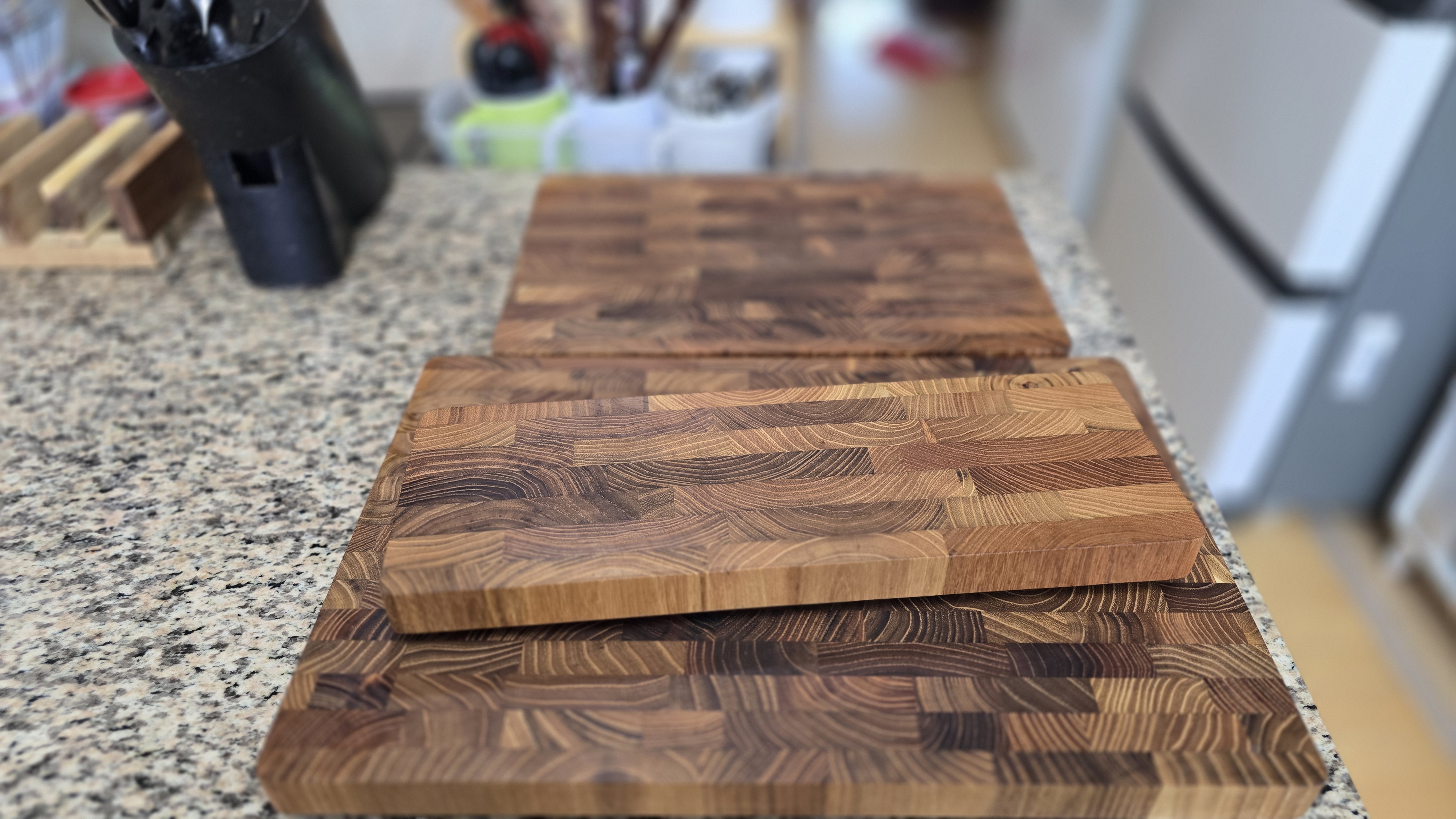 ①칼날을 보호함 나무 도마는 플라스틱이나 유리 도마에 비해 칼날에 미치는 충격이 적어 칼날을 더 오래 날카롭게 유지하는 데 도움을 줍니다. 칼날이 도마 표면에 부드럽게 닿아 마모를 줄여줍니다.